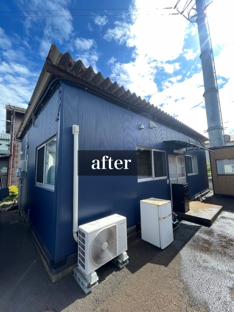 先日、プレハブ建物の外壁リフォームを行いました。経年によるサビや色あせが進んでいましたが、ニチハの金属サイディングに張り替えることで、見た目も性能も一新。まるで新築のような仕上がりになりました